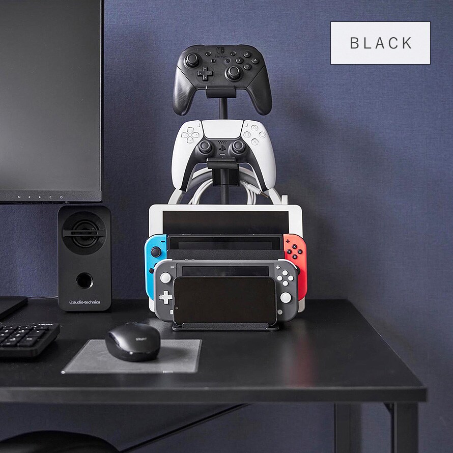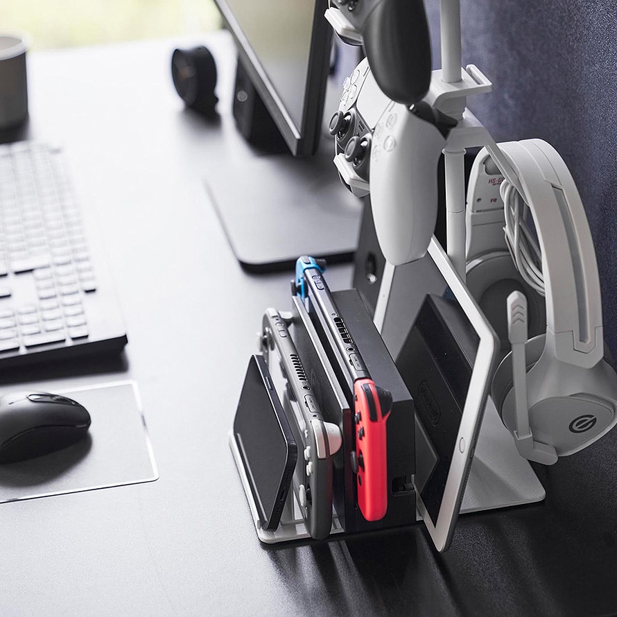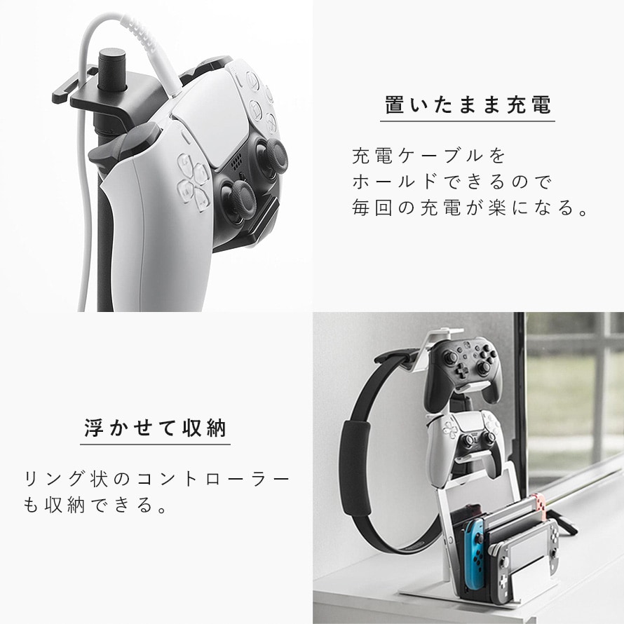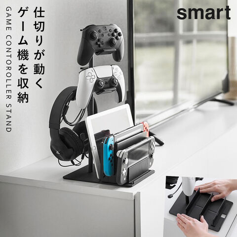 仕切りが動くゲーム機&コントローラースタンド スマート 山崎実業 smart コントローラースタンド Switch コントローラー 収納 おしゃれ モノトーン ホワイト ブラック 1686 1687