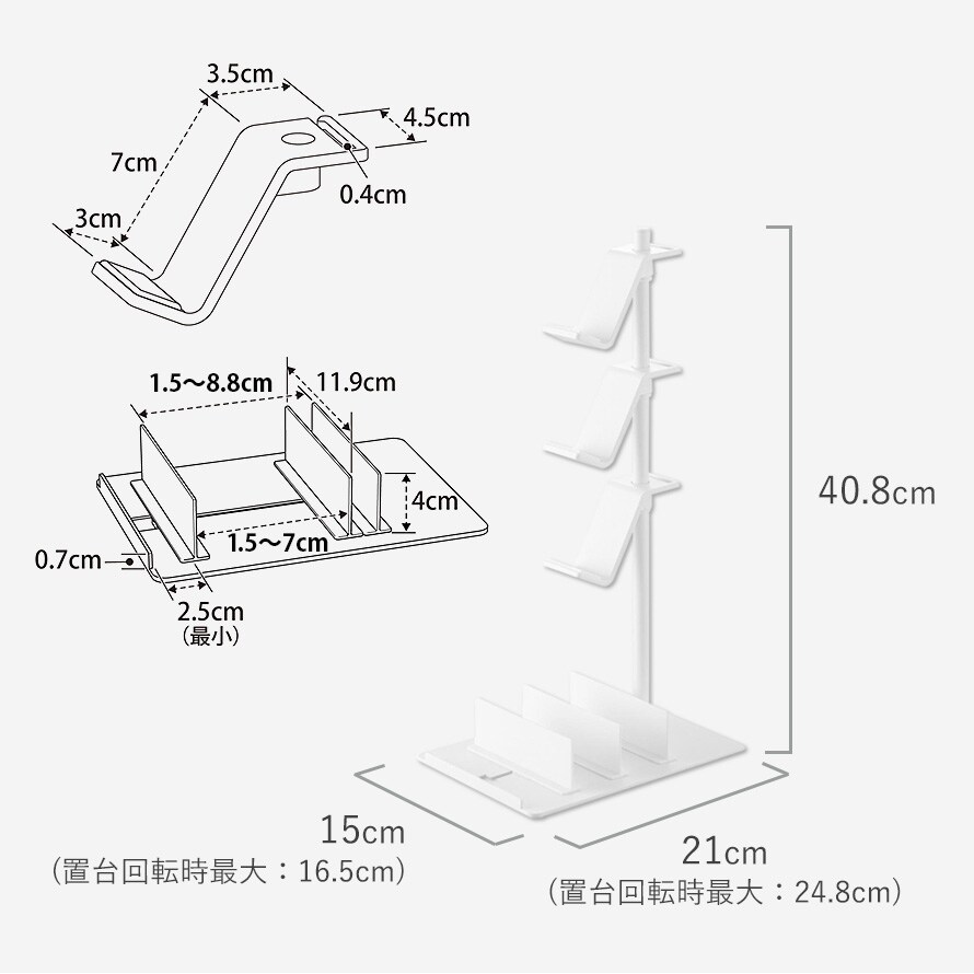| サイズ | 幅15×奥行21×高さ40.8cm 置き台回転時最大/幅16.5×奥行24.8cm |