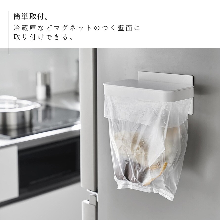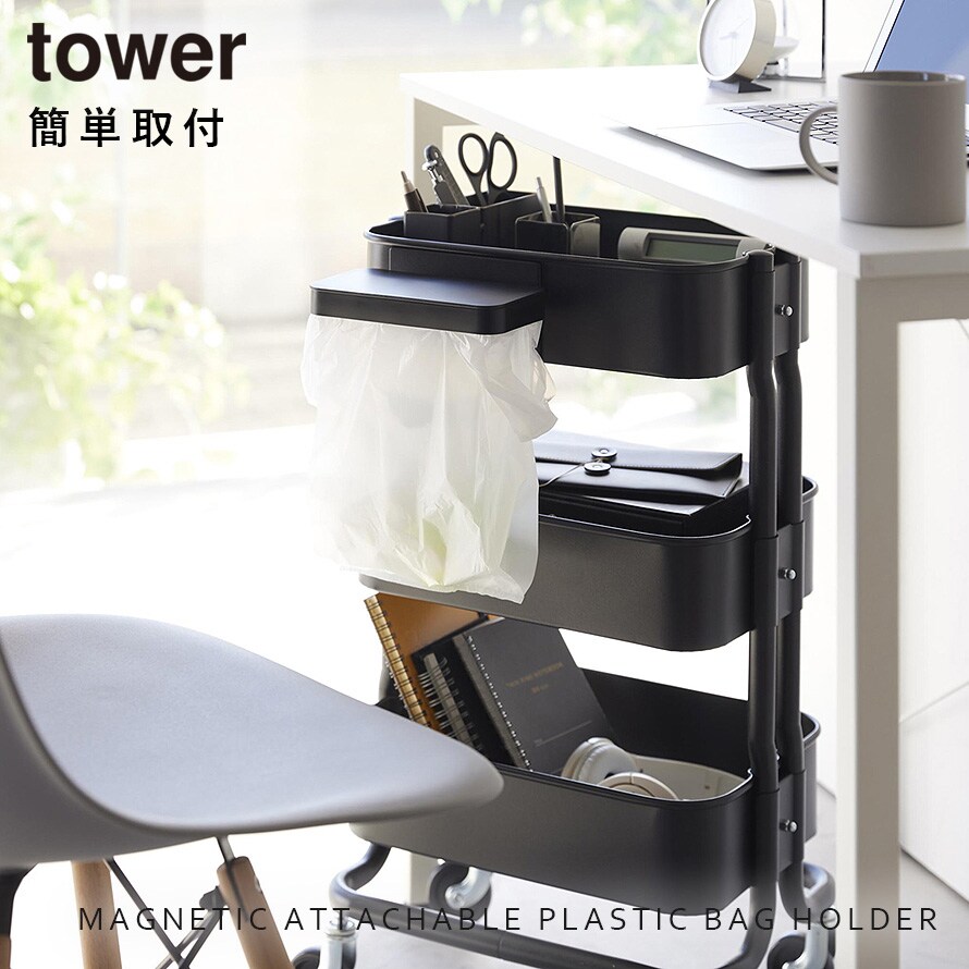 ワゴンに付けられるマグネット蓋付きポリ袋ホルダー 山崎実業 tower ポリ袋ホルダー マグネット ストッカー ゴミ箱 キッチン おしゃれ モノトーン ブラック ホワイト 1701 1702