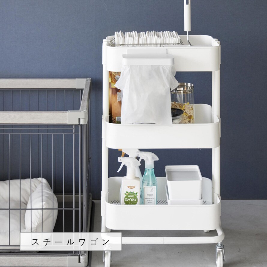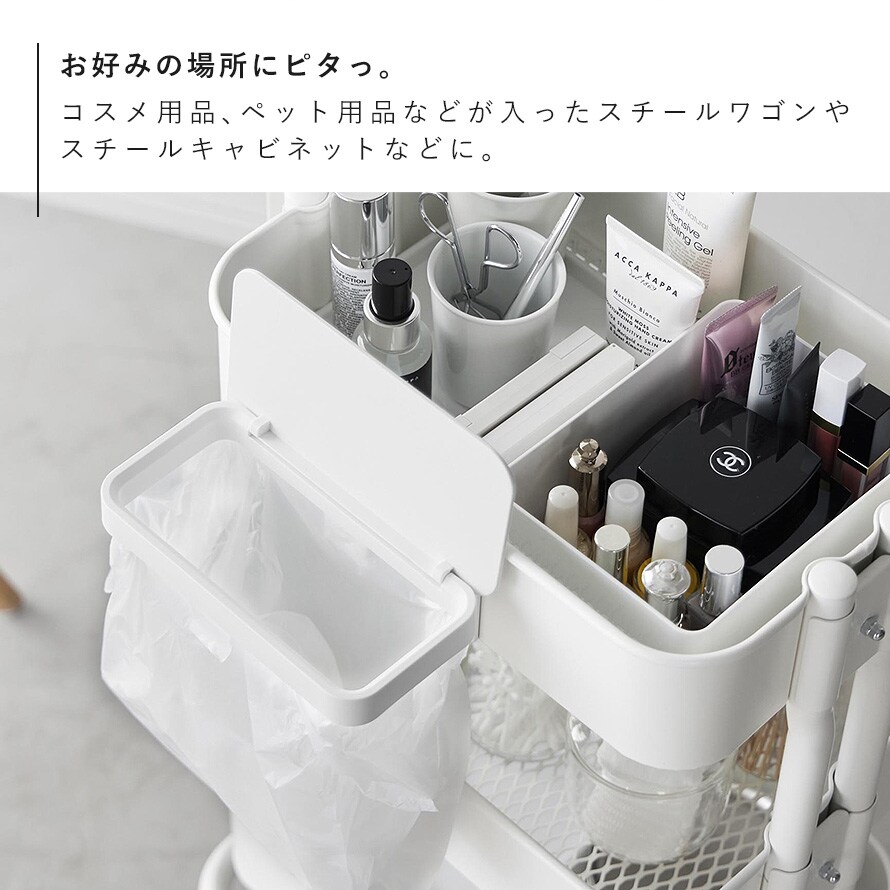 コスメ用品やペット用品で使用のスチールワゴンに取り付けても便利です。