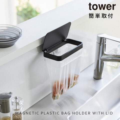 【ポイント5倍】マグネット蓋付きポリ袋ホルダー タワー 山崎実業 tower 生ゴミ ホルダー ゴミ箱 シンク 生ゴミ入れ おしゃれ モノトーン ホワイト ブラック 1919 1920