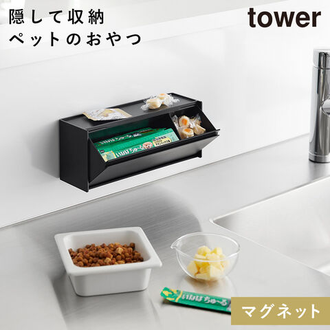 【ポイント5倍】マグネットペットおやつ収納ケース タワー 山崎実業 tower ペット おやつ入れ おやつケース おしゃれ モノトーン ホワイト ブラック