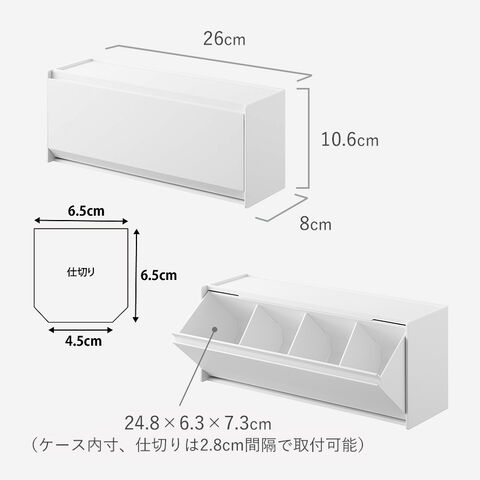 | 内寸サイズ | ケース/幅24.8×奥行6.3×高さ7.3cm 仕切り間隔/幅2.8cm |