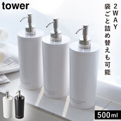 【ポイント5倍】シャンプーボトル ソープディスペンサー ツーウェイディスペンサー タワー ラウンド 白い 黒 tower 山崎実業 yamazaki
