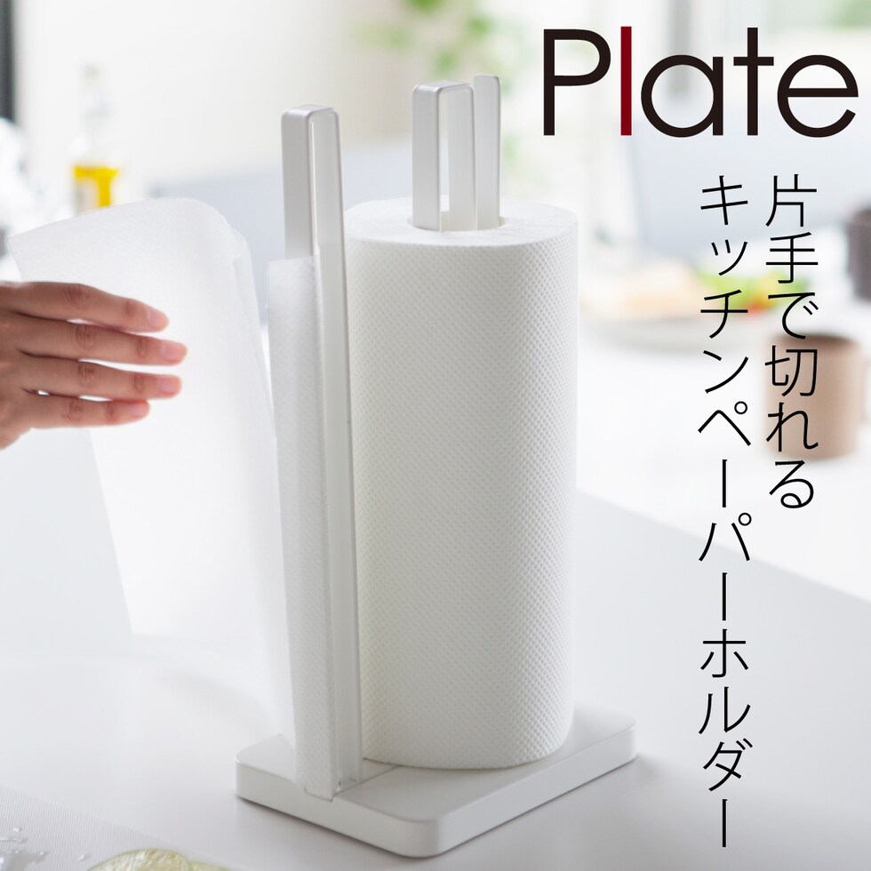 大判 キッチンペーパー ホルダー 片手 キッチンペーパー スタンド ホルダー 縦型 キッチン 山崎実業 片手で切れるキッチンペーパーホルダー Plate プレート ホワイト