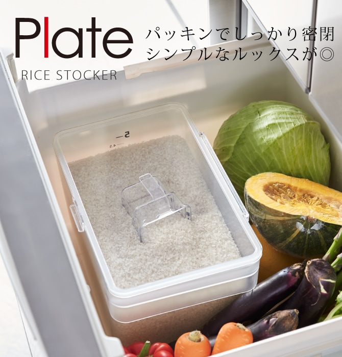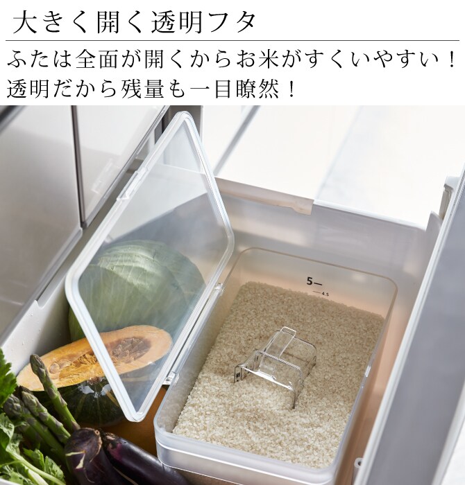 米びつ 5kg シンク 下 計量カップ 密閉 ストッカー キッチン シンク下米びつ プレート 5kg 計量カップ付き クリア 03379