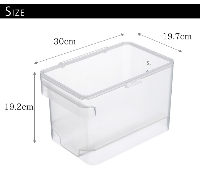 | 材質 | 本体/PS樹脂、フタ/ABS樹脂、パッキン/シリコーン、計量カップ/アクリル樹脂 |