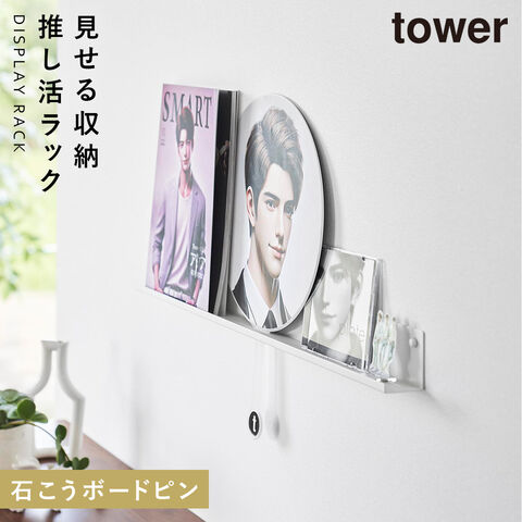 【ポイント5倍】ウォール推し活ラック タワー 石こうボード 壁対応 山崎実業 tower 推し活 収納 うちわ 推し活グッズ収納 ウォールシェルフ おしゃれ モノトーン ホワイト ブラック 3744 3745