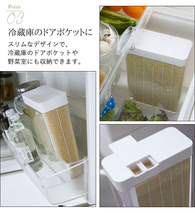 米びつ スリム 冷蔵庫 野菜室 冷蔵庫に入れる 米びつ ライスストッカー 米 お米 ストッカー 山崎実業 1合分別 冷蔵庫米びつ プレート