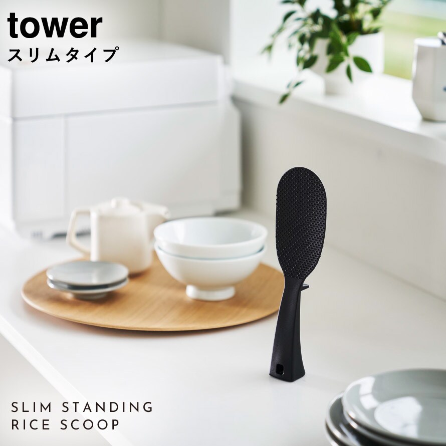 立って置けるしゃもじ タワー スリム 山崎実業 tower しゃもじ 立つ 自立 くっつかない おしゃれ モノトーン ホワイト ブラック 4758 4759