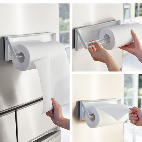 冷蔵庫に強力マグネットで簡単取り付け「キッチンペーパーホルダー」。
