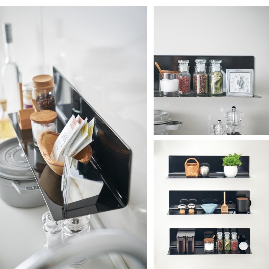マグネットの付く壁面にペタッとつけるだけ。便利なキッチンラック。