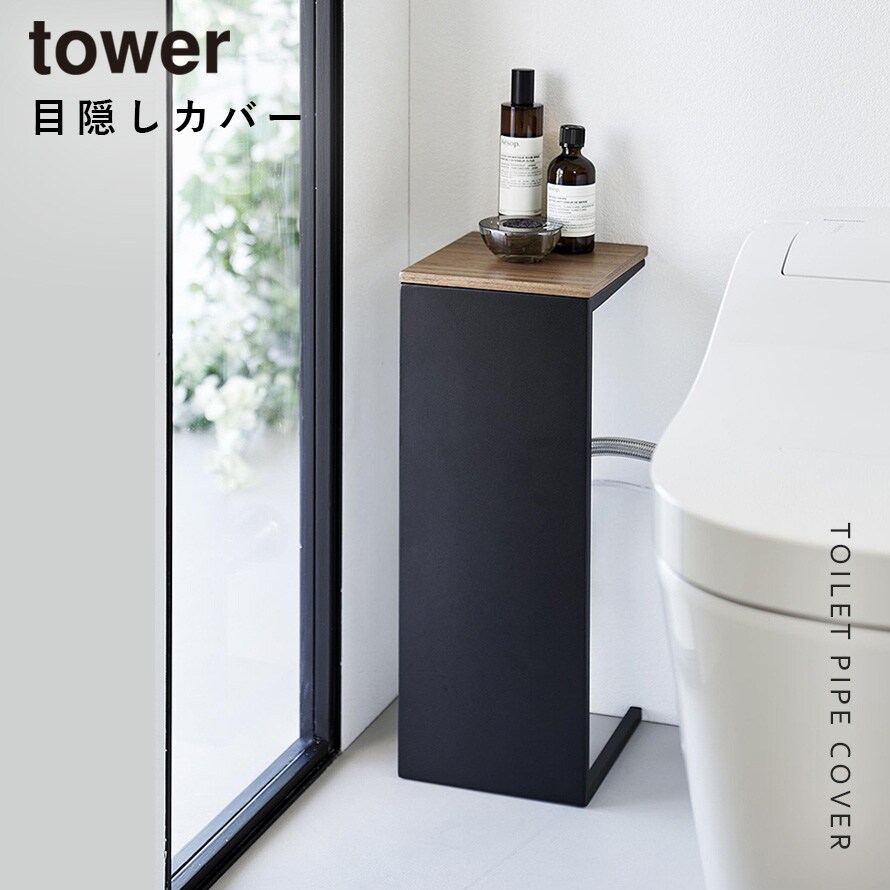 【ポイント5倍】目隠しトイレ配管カバー タワー 山崎実業 tower トイレ コード 配管 隠し カバー スリム おしゃれ モノトーン ホワイト ブラック 5223 5224