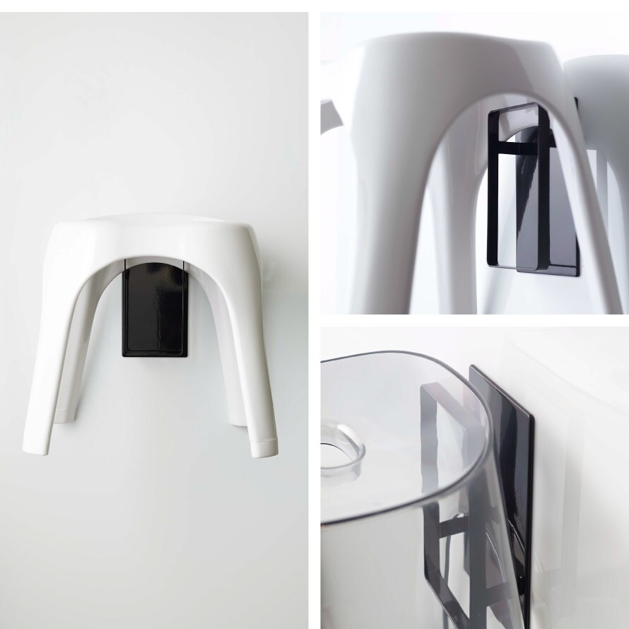 置き場所に困る風呂椅子を、強力マグネットで壁面に収納可能。