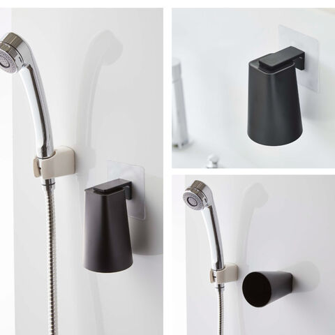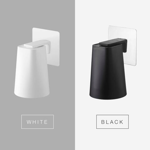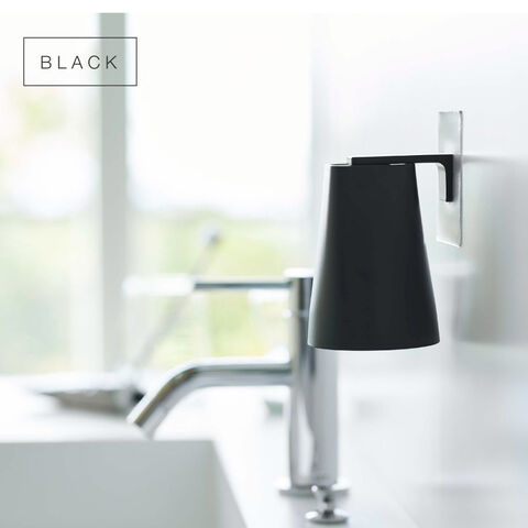 ホルダー付きのフィルムフックを壁面に貼り、磁石が埋め込まれたタンブラーの底面をホルダーに近づければピタッと付いて、風通しよくキープ。