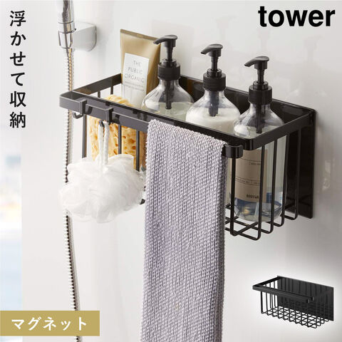 【ポイント5倍】バスルーム 収納 マグネット バスルームラック tower タワー 山崎実業 浮かせる収納 ホワイト ブラック マグネットバスルームバスケット タワー ホワイト