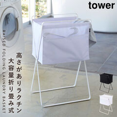 ランドリーバスケット タワー tower 山崎実業 大容量 折りたたみ ハイタイプ スリム ランドリー 折り畳み高床式ランドリーバスケット タワー