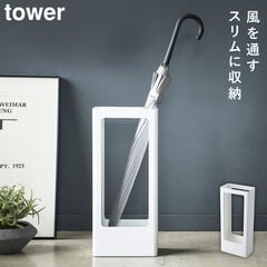 【ポイント5倍】傘立て マグネット スリム 北欧 tower タワー 山崎実業 浮かせる収納 ホワイト ブラック 傘 収納 玄関 トレー付き マグネットアンブレラホルダー タワー