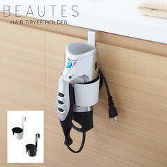 ごちゃごちゃしがちな洗面台まわりの小物類をスッキリ収納できるドライヤー収納ホルダー。洗面台の扉にかけて収納ができます。