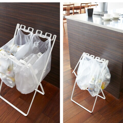 フレームに直接ゴミ袋が掛けられる、折りたたみ式のゴミ袋&レジ袋スタンド。
