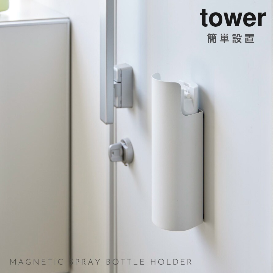 マグネット目隠しスプレーホルダー タワー 山崎実業 tower スプレー 収納 懐中電灯 ホルダー マグネット おしゃれ モノトーン ホワイト ブラック 8237 8238