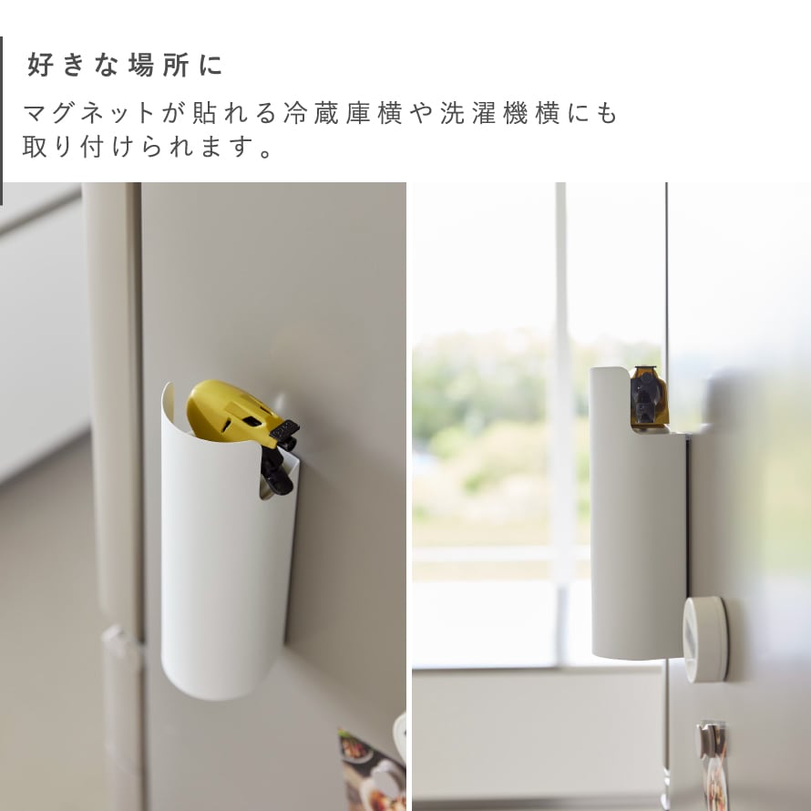 マグネットで玄関扉や冷蔵庫横、洗濯機横に簡単取り付け!