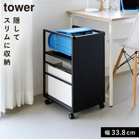 目隠しワゴン タワー スリム 山崎実業 tower 収納 ワゴン キャスター スリム おしゃれ モノトーン ホワイト ブラック 8468 8469