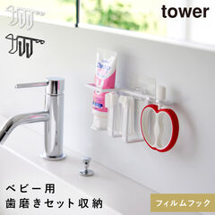 【ポイント5倍】フィルムフックベビー用歯磨きセットホルダー タワー 山崎実業 tower 歯ブラシホルダー 洗面台 収納 壁掛け 歯ブラシ 赤ちゃん ベビー おしゃれ モノトーン ホワイト ブラック 8472 8473