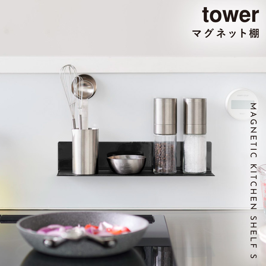 マグネットキッチン棚 タワー S 山崎実業 tower キッチン マグネット ラック 壁 マグネット収納 キッチンラック 棚 おしゃれ モノトーン ホワイト ブラック 10011 10012
