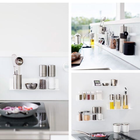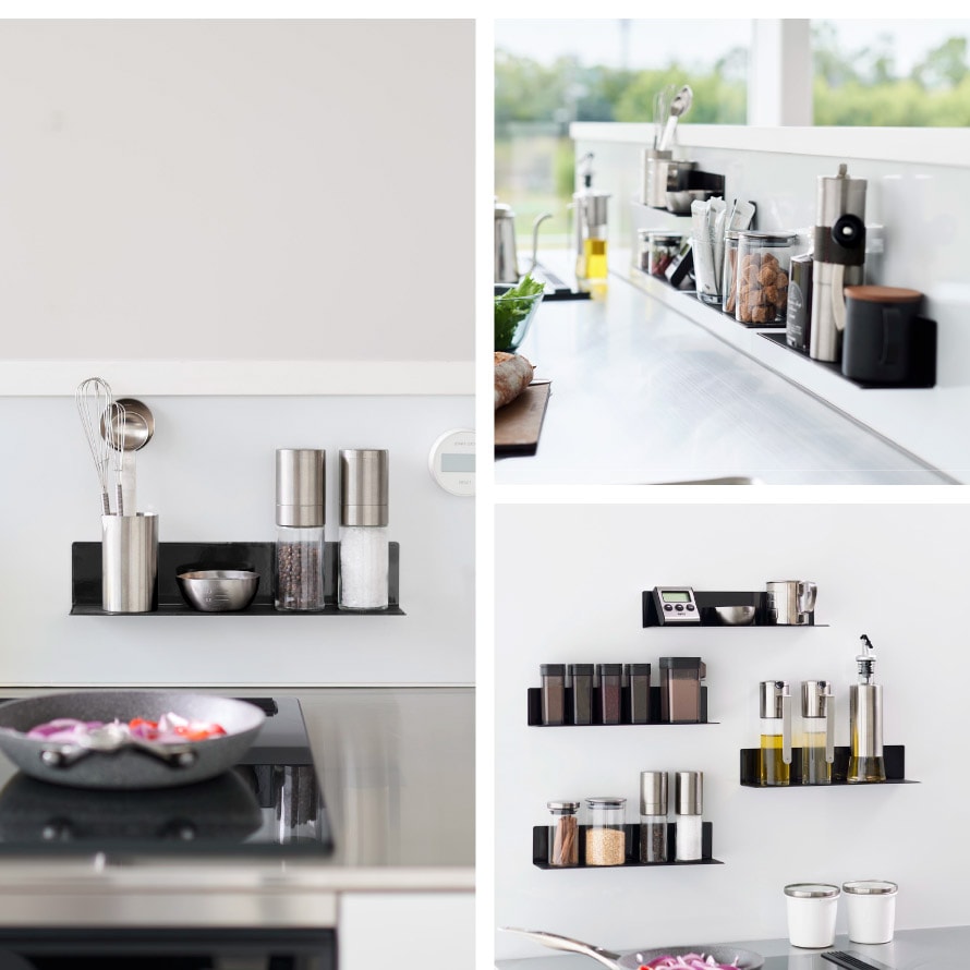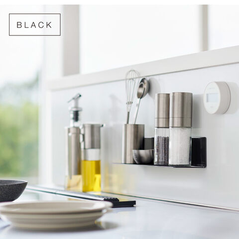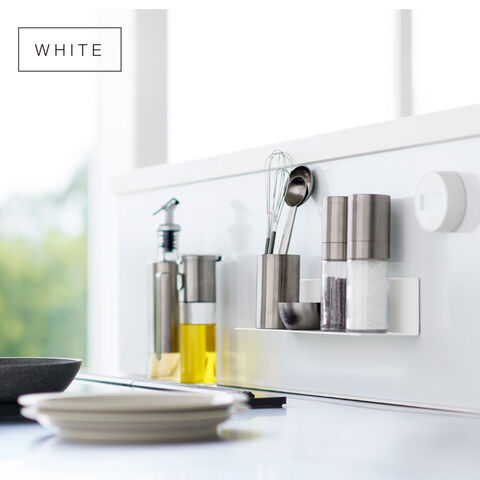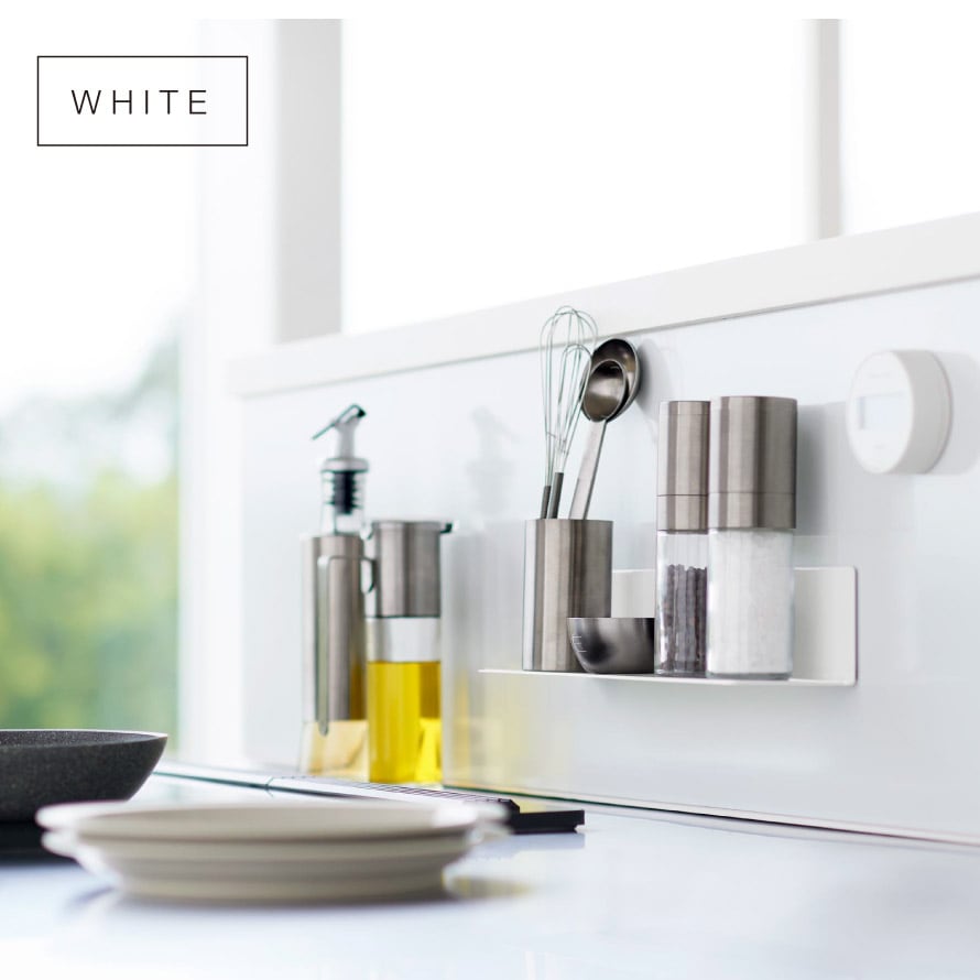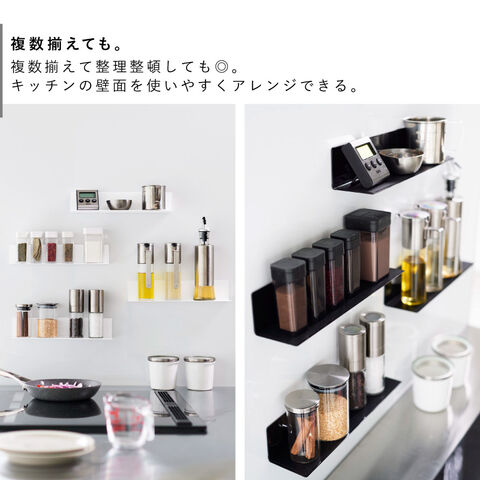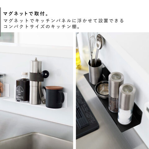 マグネットでキッチンパネルに浮かせて設置できるコンパクトサイズのキッチン棚。