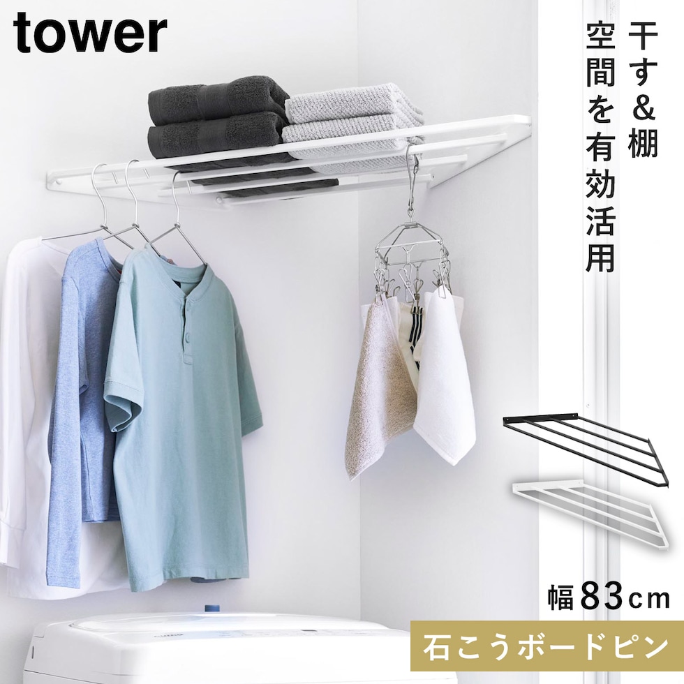 コーナーハンガーラック タワー 石こうボード壁対応 山崎実業 tower ハンガーラック コーナー 棚 コーナーラック 物干し おしゃれ モノトーン ホワイト ブラック 10017 10018