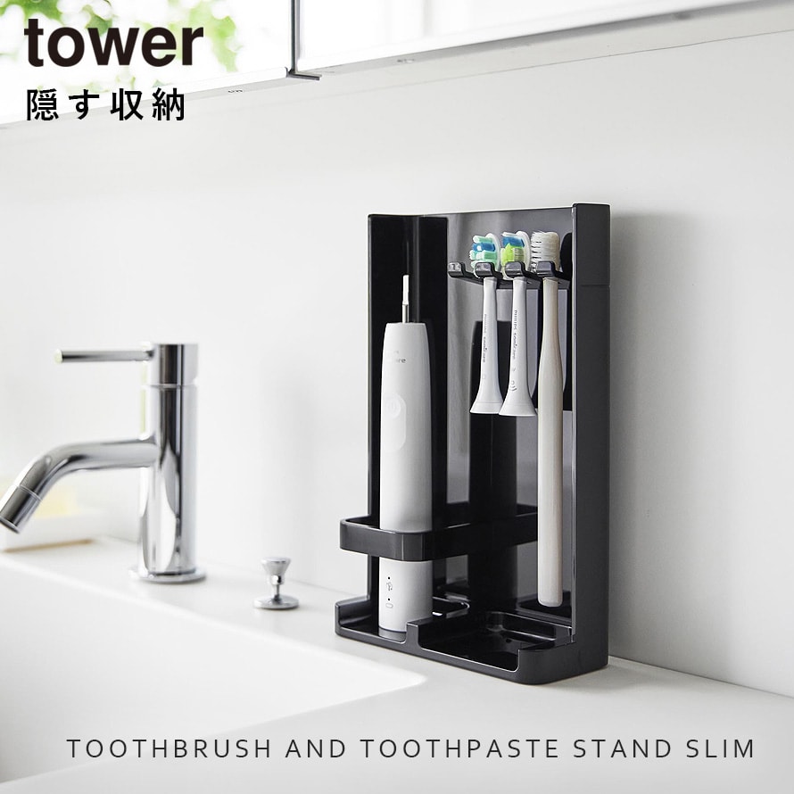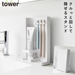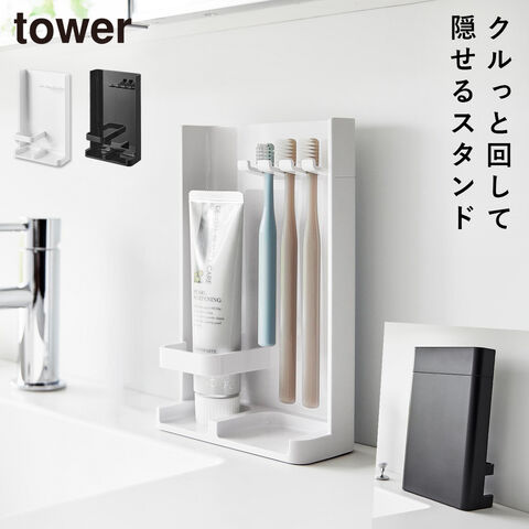 目隠し歯ブラシ&チューブスタンド タワー スリム 山崎実業 tower 歯ブラシ収納 隠す 歯ブラシ 歯磨き粉 収納 おしゃれ モノトーン ホワイト ブラック 10025 10026