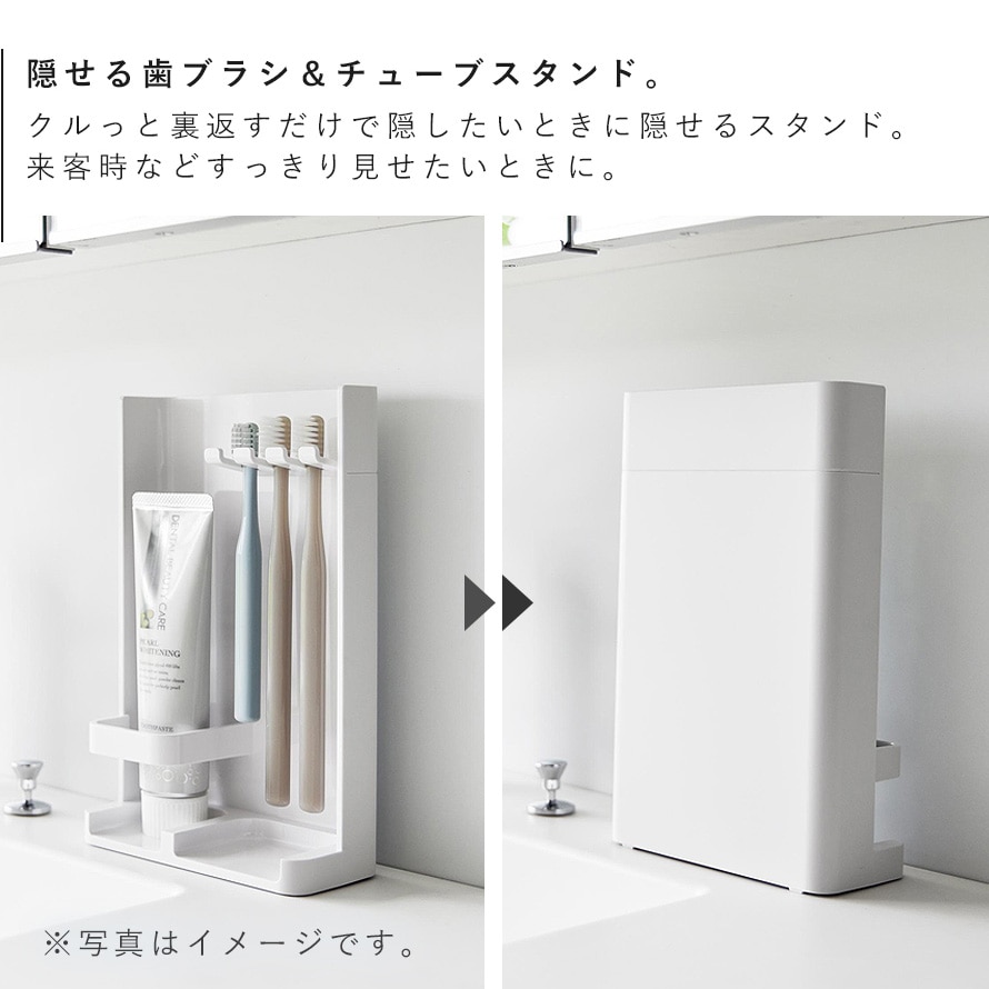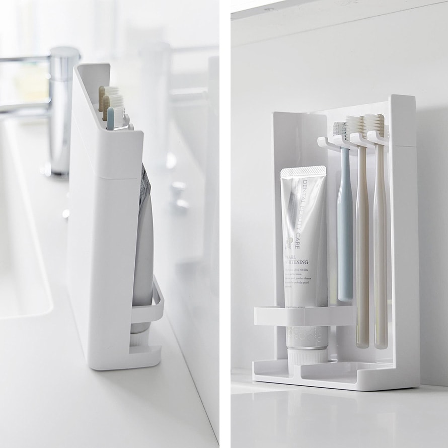 隠したい時すぐに隠せるスリムな歯ブラシ&チューブスタンド。