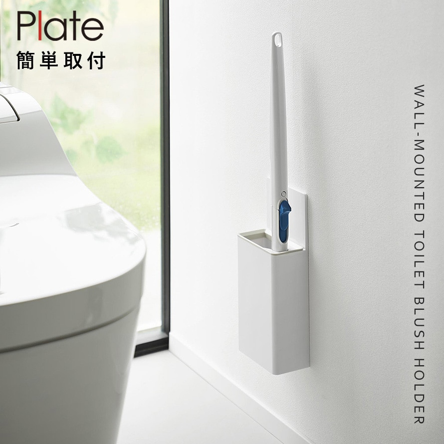ウォール流せるトイレブラシホルダー プレート 石こうボード壁対応 山崎実業 plate 流せるトイレブラシ 収納 壁掛け スリム トイレブラシ 流せる おしゃれ モノトーン ホワイト 10031