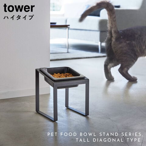 【ポイント5倍】ペットフードボウルスタンド タワー 斜めハイタイプ 山崎実業 tower ペット エサ皿 餌皿 餌入れ ペットフード ボウル 斜め おしゃれ モノトーン ホワイト ブラック
