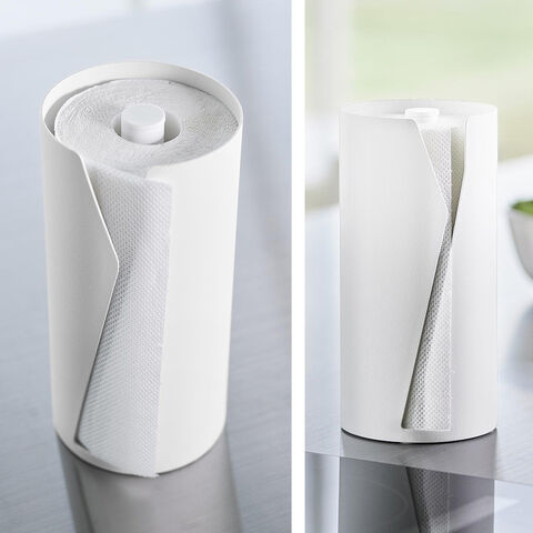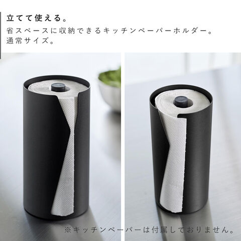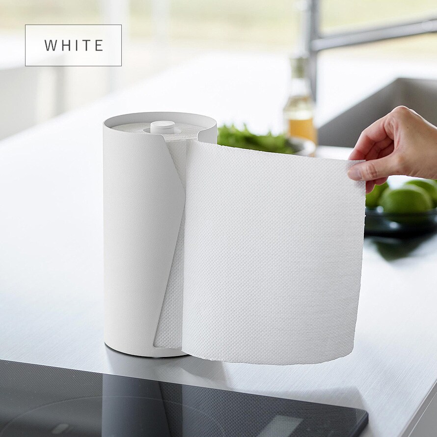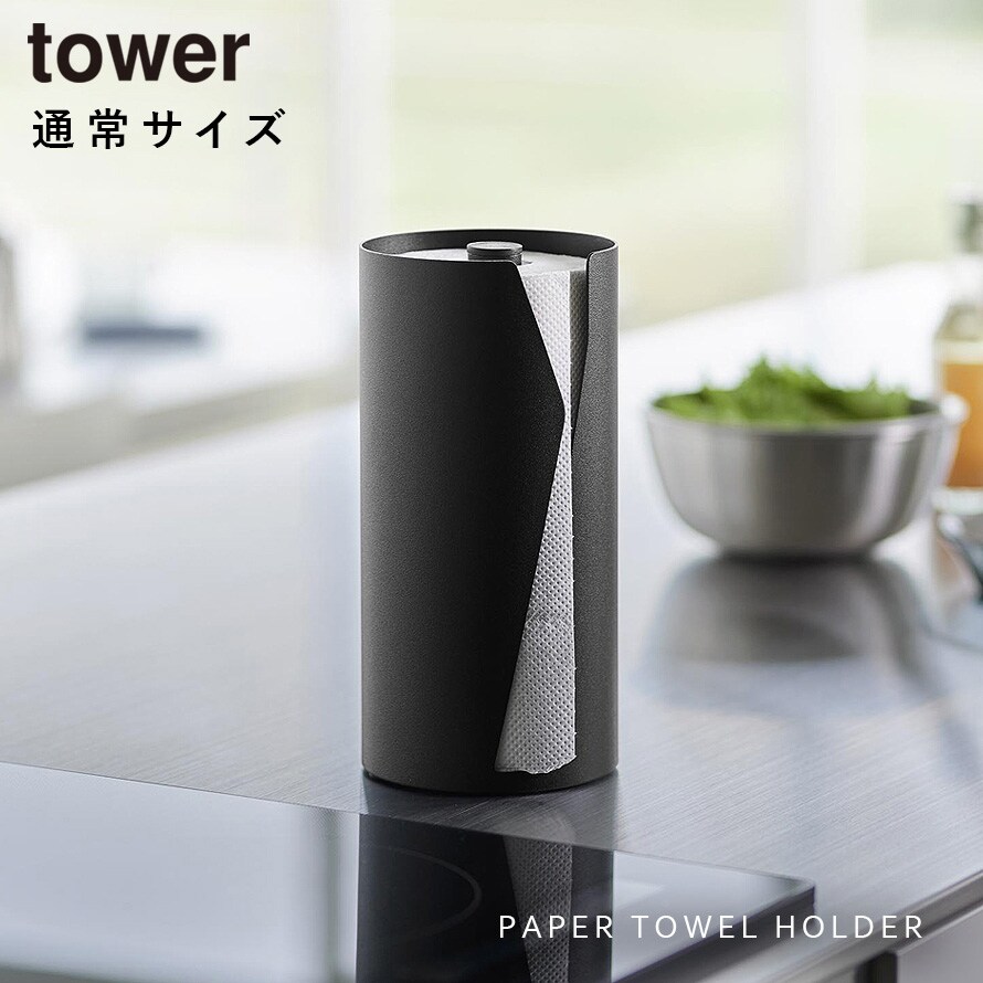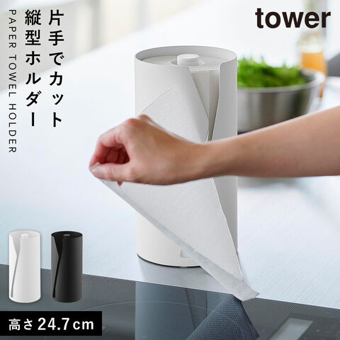 片手でカット隠せるキッチンペーパーホルダー タワー 縦タイプ 山崎実業 tower キッチンペーパースタンド 片手で切れる おしゃれ モノトーン ホワイト ブラック 10039 10040