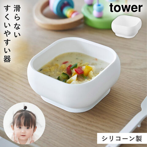 【ポイント5倍】吸盤付きシリコーンベビーフードボウル タワー 山崎実業 tower 赤ちゃん ひっくり返らない お皿 吸盤 ベビー 食器 離乳食 プレート すくいやすい おしゃれ モノトーン ホワイト ブラック 10047 10048