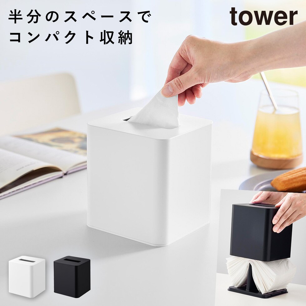 コンパクトティッシュケース タワー スクエア 山崎実業 tower ティッシュケース コンパクト 卓上 おしゃれ モノトーン ホワイト ブラック 10054 10055