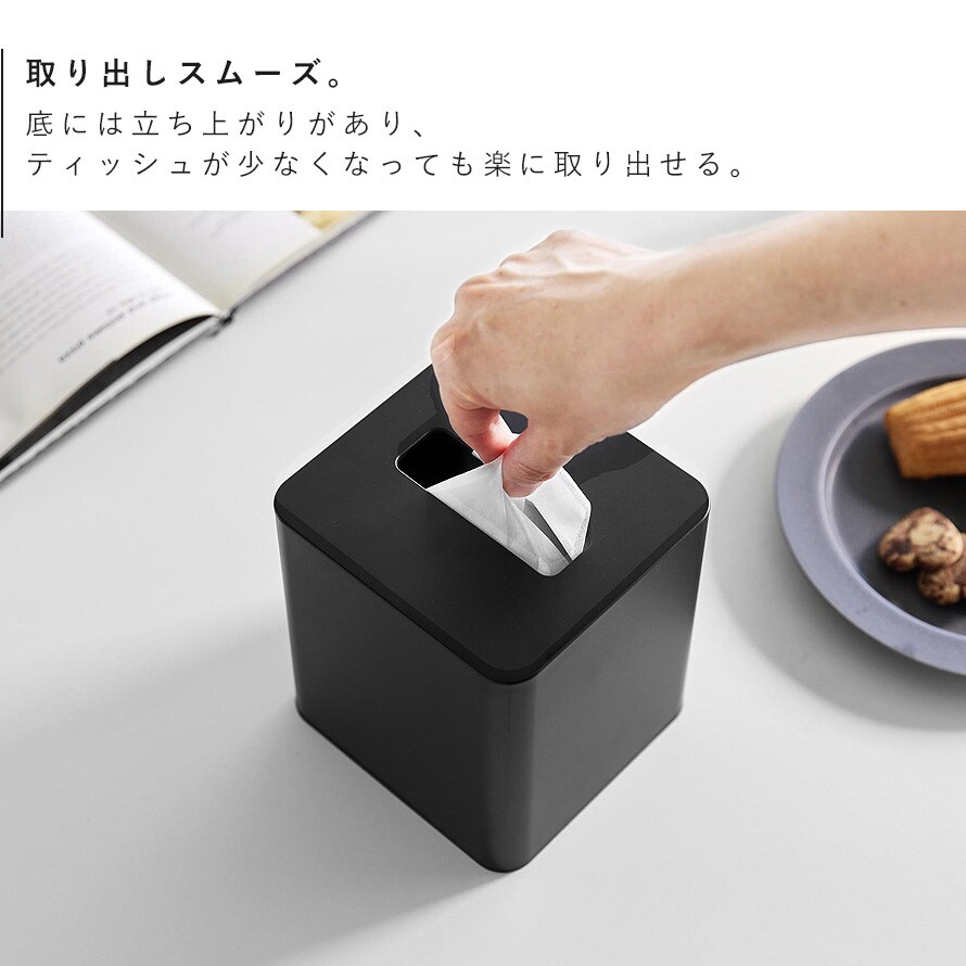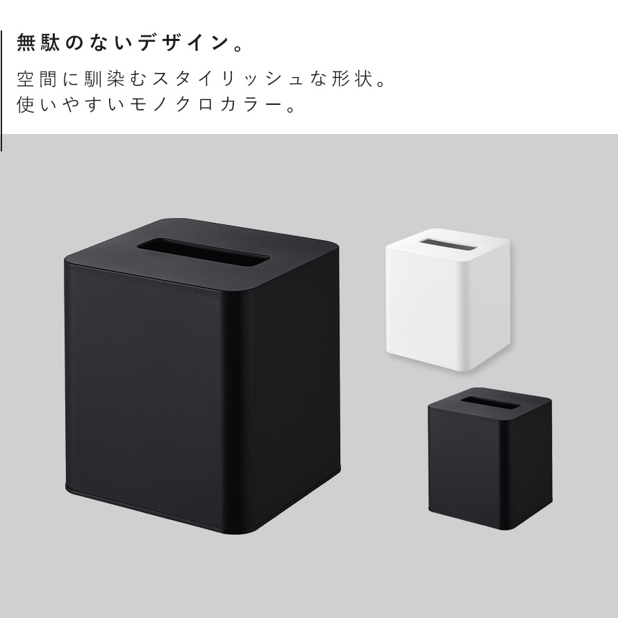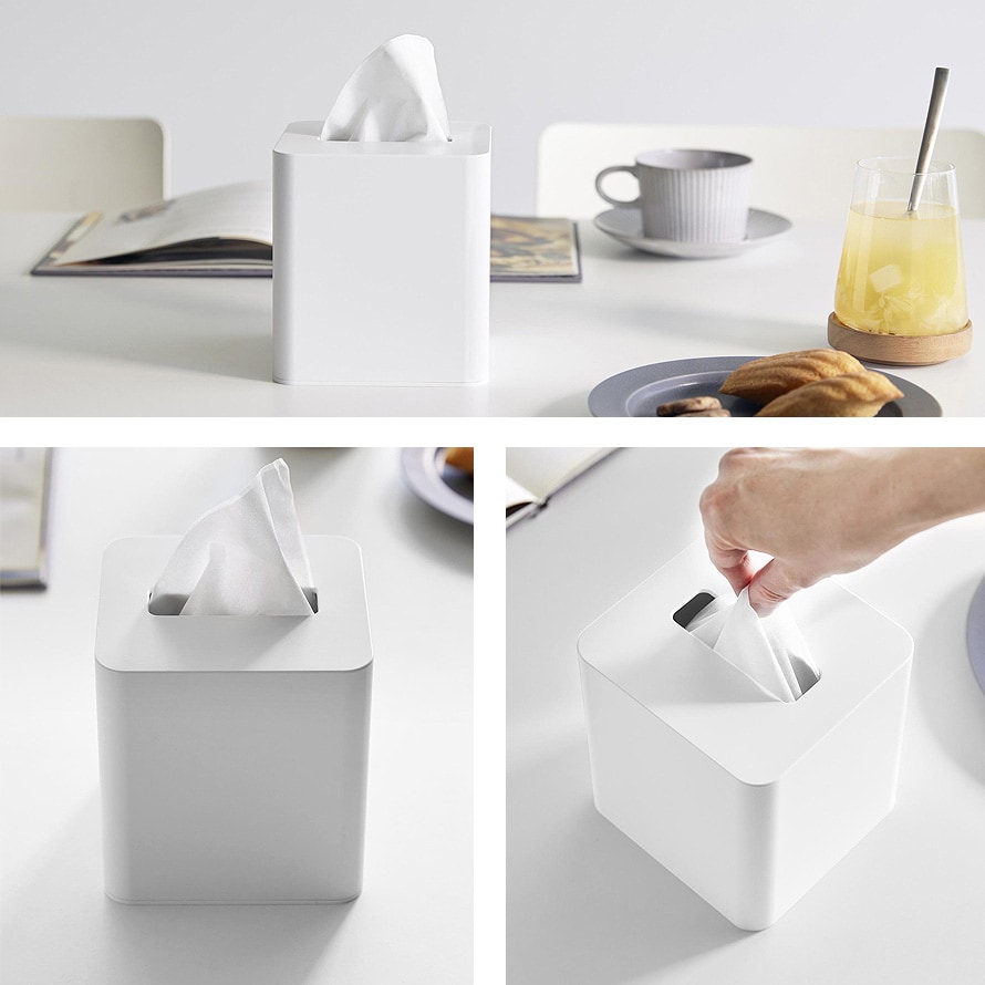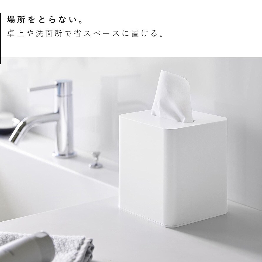 卓上や洗面所で場所をとらない、省スペースなティッシュケース。