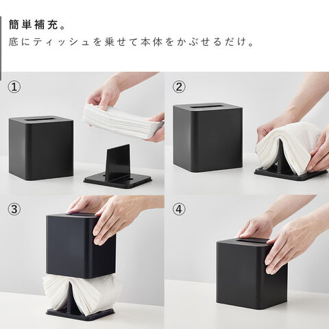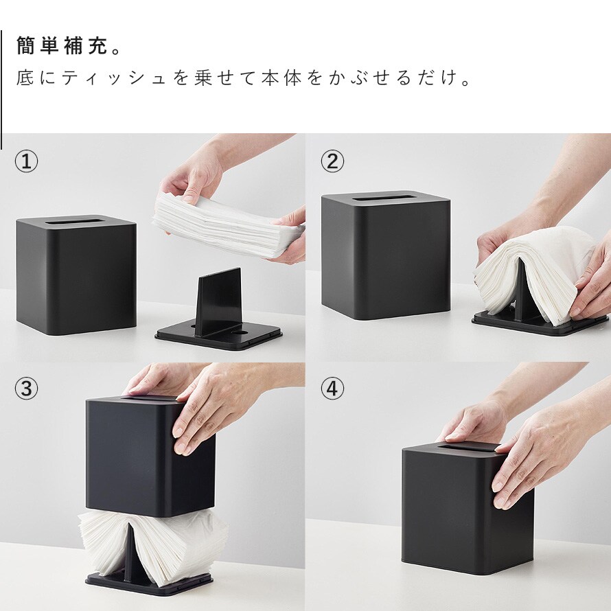 補充の際は、底にティッシュを乗せて本体をかぶせるだけで簡単。