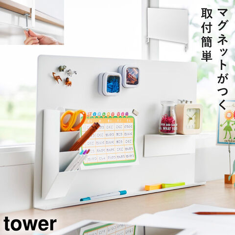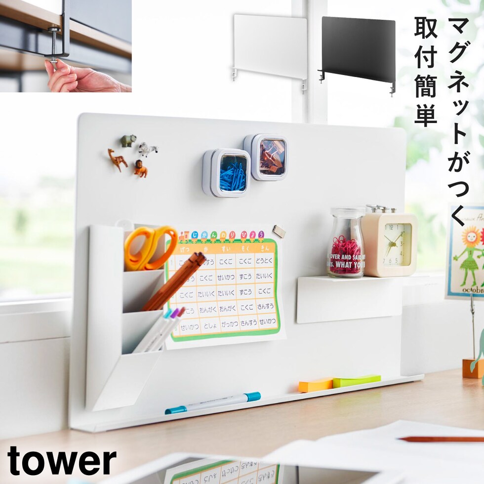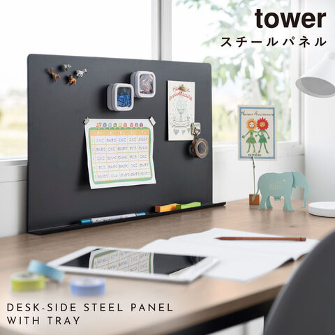 デスク横トレー付きスチールパネル タワー 山崎実業 tower デスク 収納 卓上 マグネット デスク スチールパネル おしゃれ モノトーン ホワイト ブラック 10066 10067