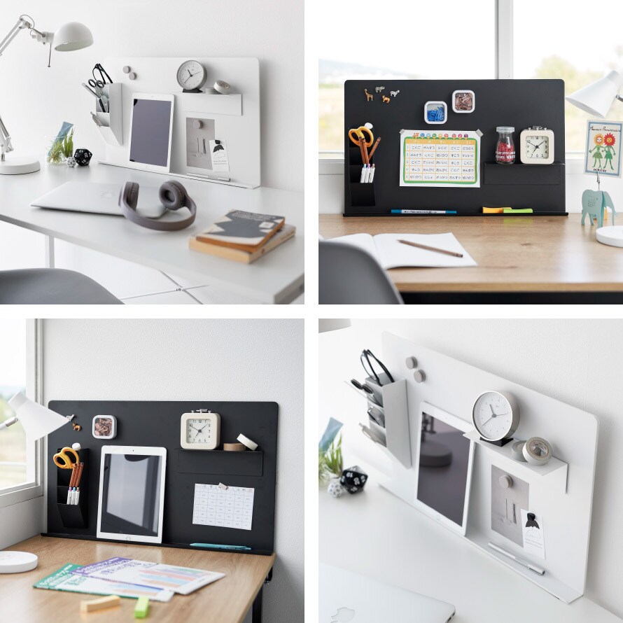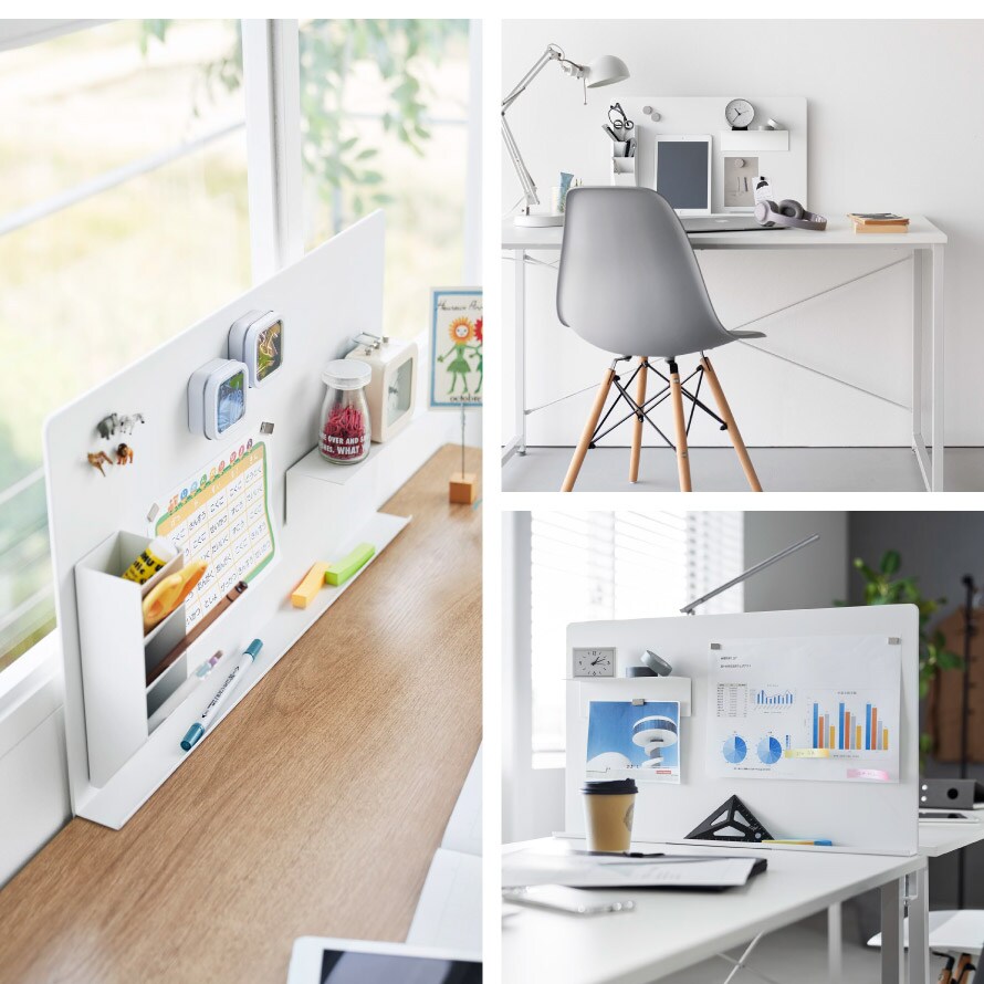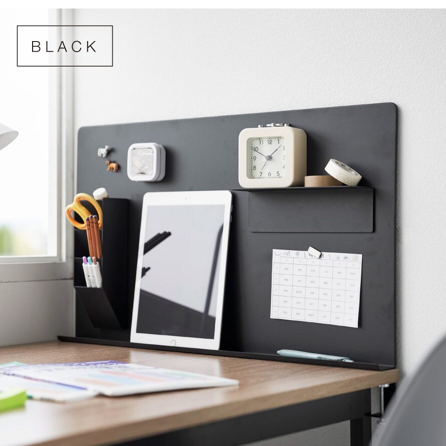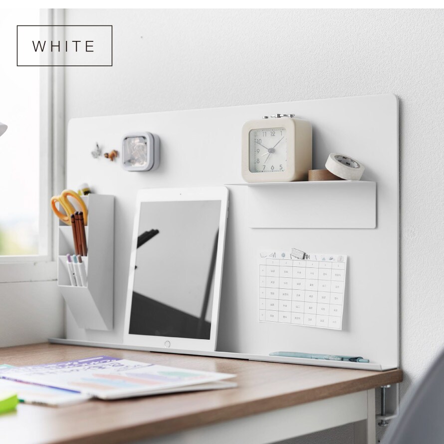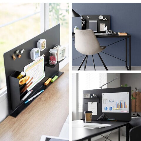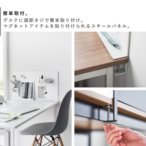 デスクに調節ネジで簡単取り付け。マグネットアイテムやツールを自由にカスタマイズできる便利なスチールパネル。