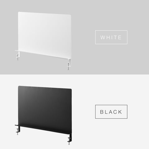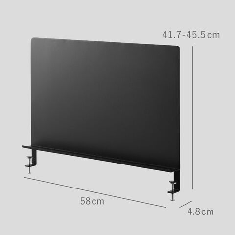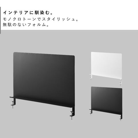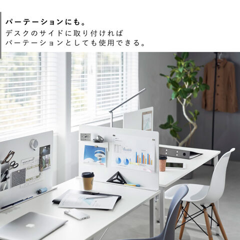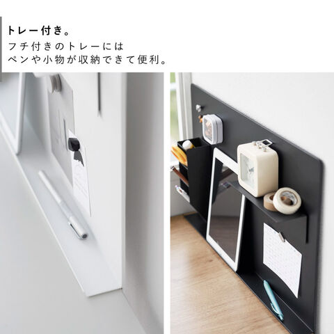 フチ付きのトレーにはペンや小物が収納できて便利。デスクのサイドに取り付ければパーテーションとしても使用できます。
