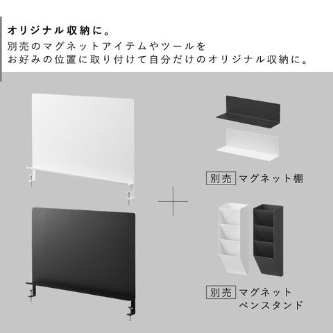 別売のマグネットアイテムやツールをお好みの位置に取り付けて、自分だけのオリジナル収納がつくれます。