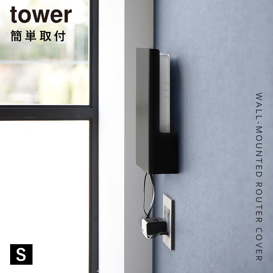 【ポイント5倍】ウォール隠せるルーター収納 タワー Sサイズ 石こうボード壁対応 山崎実業 tower ルーター 収納 ボックス ラック 壁掛け おしゃれ モノトーン ホワイト ブラック 10074 10075