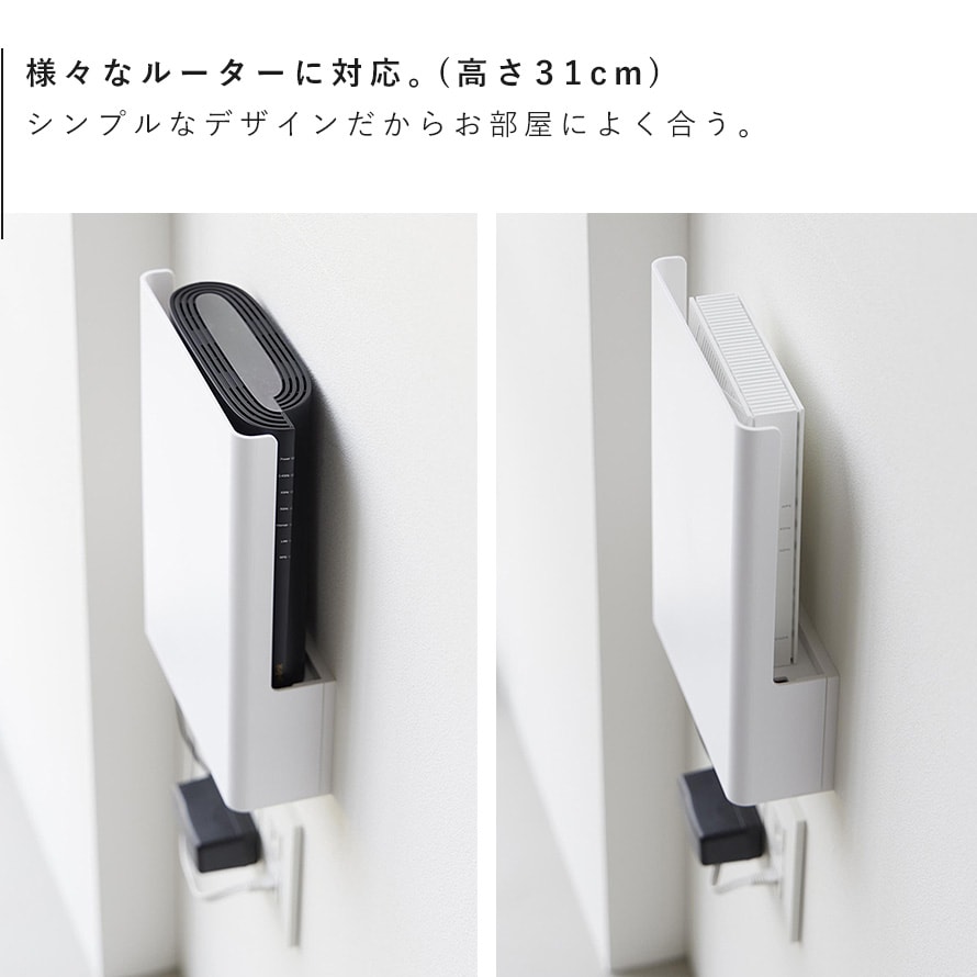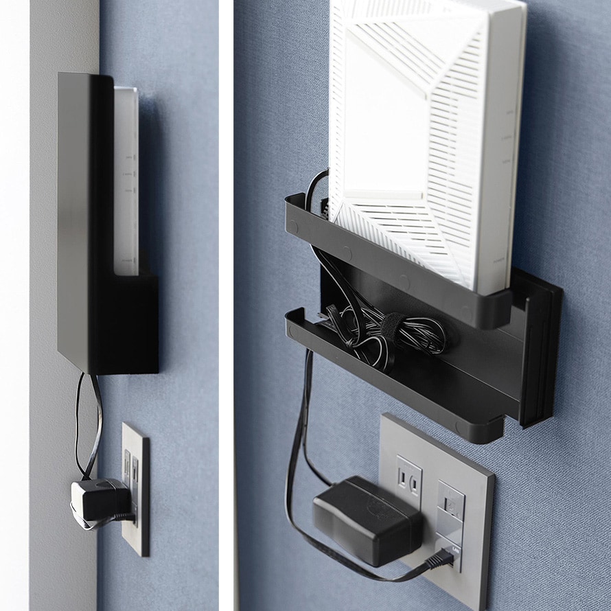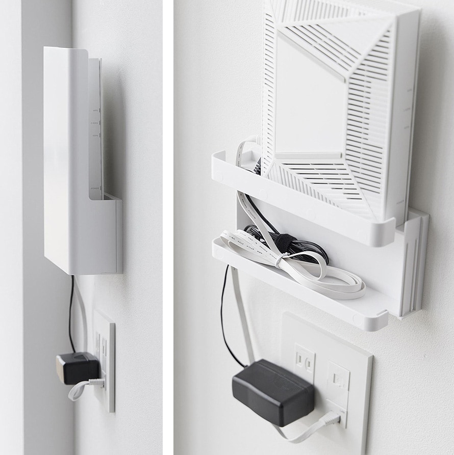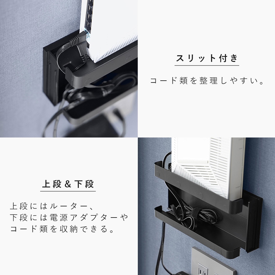 様々なルーターに対応しており、下段には電源アダプターやコード類を収納することができます。