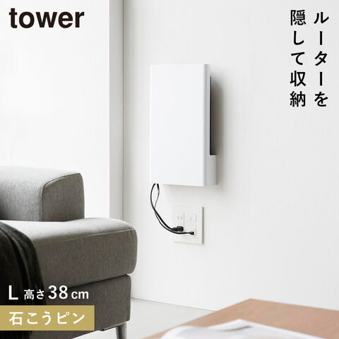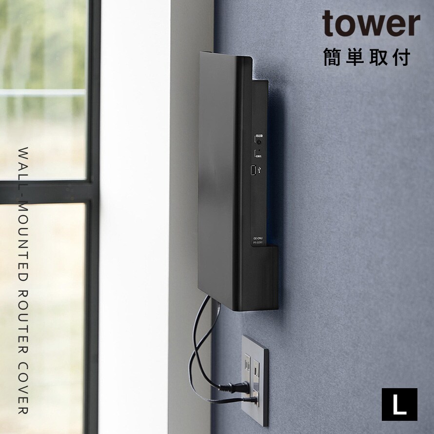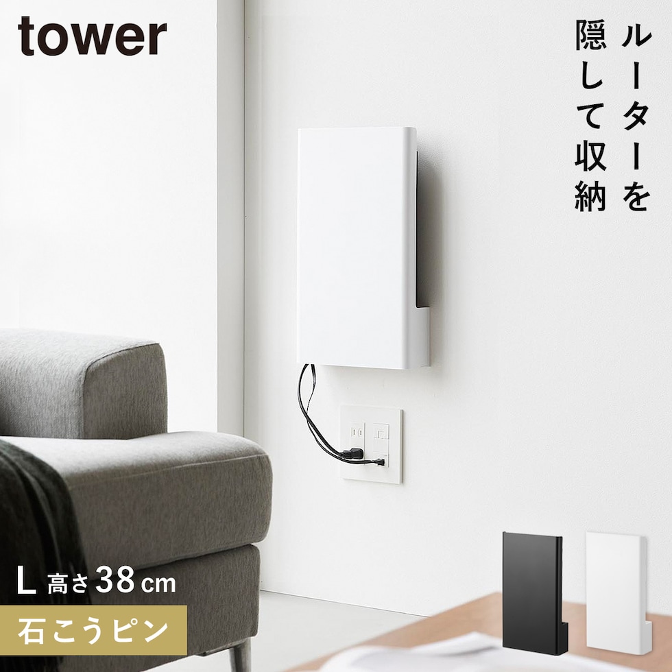 【ポイント5倍】ウォール隠せるルーター収納 タワーLサイズ 石こうボード壁対応 山崎実業 tower ルーター 収納 ボックス ラック 壁掛け おしゃれ モノトーン ホワイト ブラック 10076 10077