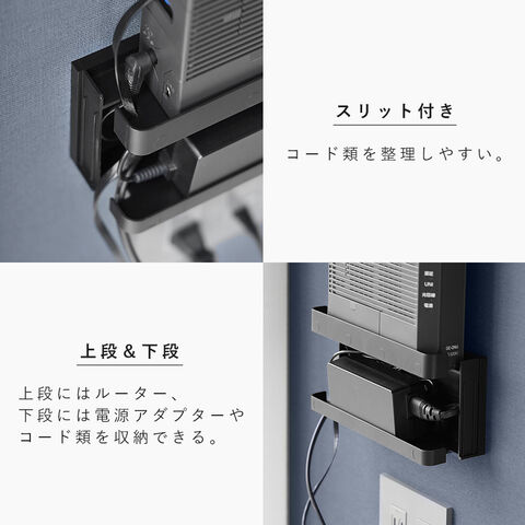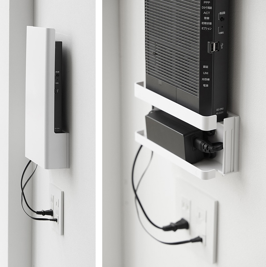 様々なルーターに対応しており、下段には電源アダプターやコード類を収納することができます。