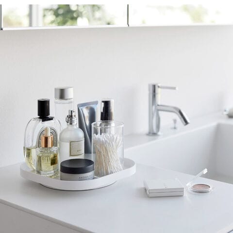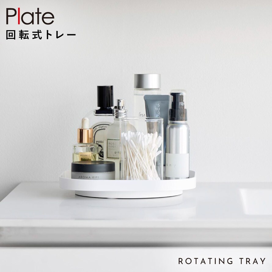 回転式収納トレー プレート 山崎実業 plate 洗面台 化粧品 収納 回転 コスメ 冷蔵庫内 収納ラック おしゃれ モノトーン ホワイト 10078