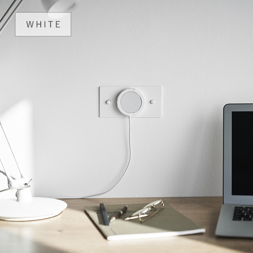 石こうボードピンで簡単に取り付けできる、マグネット式ワイヤレス充電器対応のスマートフォンホルダーです。